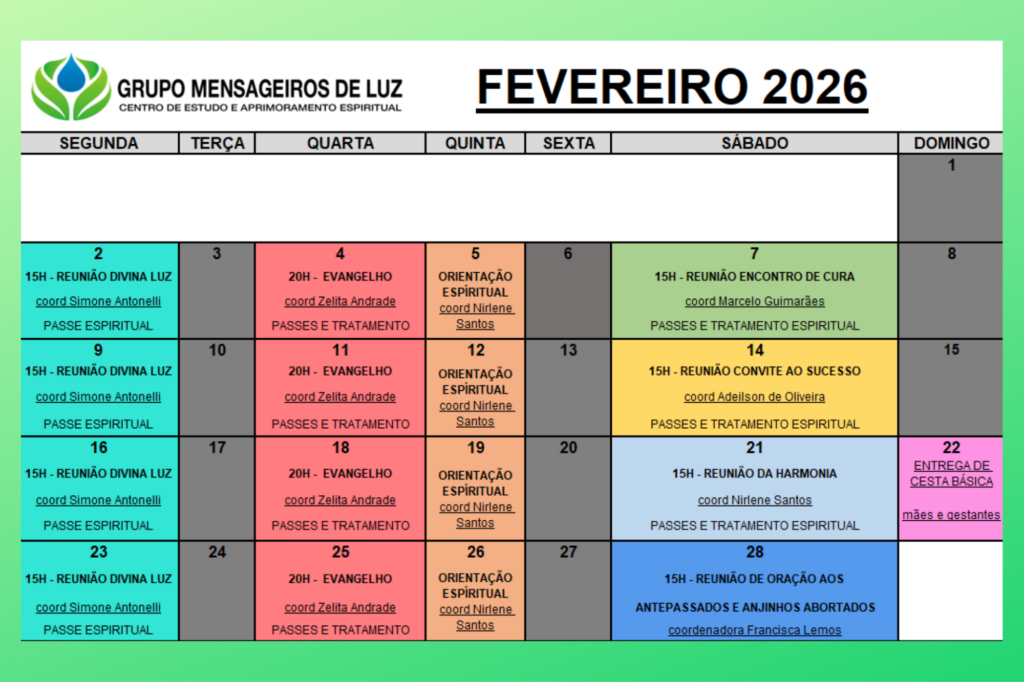 “Compreendi que a luz do amor de Deus abençoa, indistintamente, a todas as pessoas. Como filho de Deus, reconheço minha alma iluminada pelo amor e